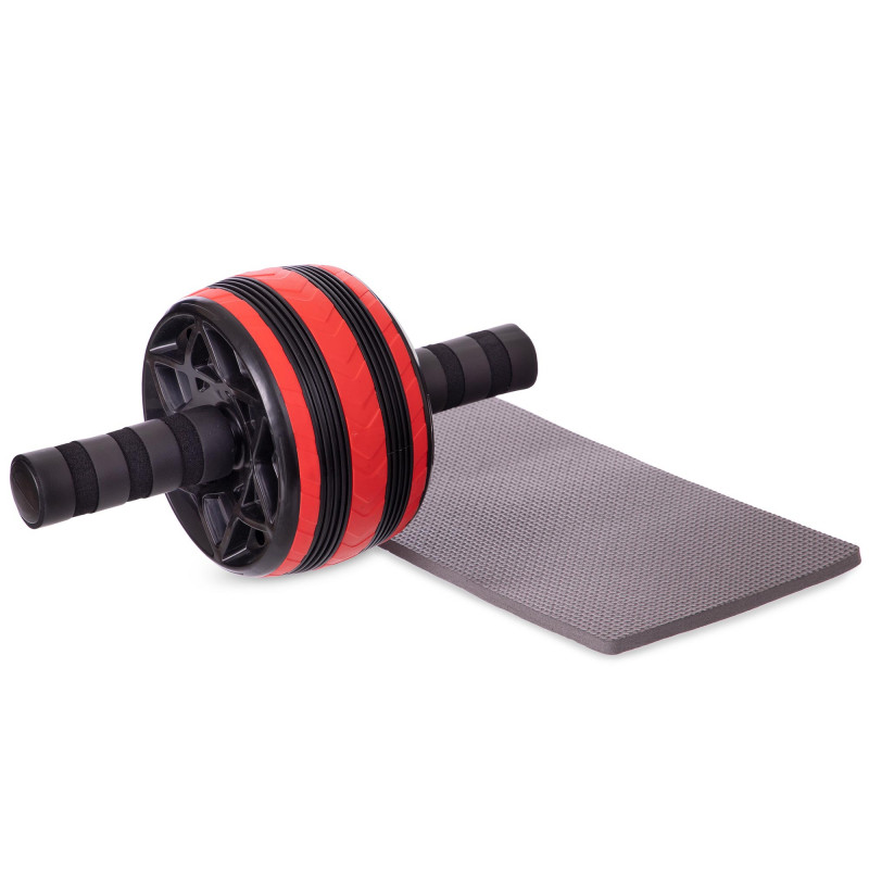 Колесо виготовлене з металу та пластику. Воно не буде ковзати на підлоговому покритті, оскільки аксесуар комплектується килимком. Невеликий за розміром килимок легко поміститься в тренувальну сумку, не займе багато місця на полиці.