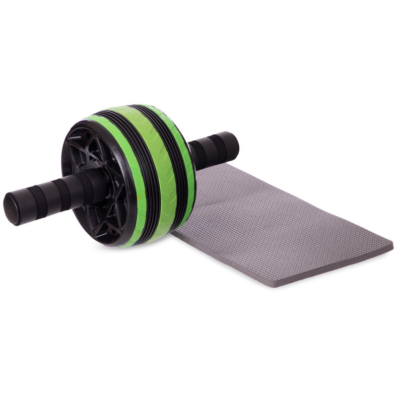 Колесо виготовлене з металу та пластику. Воно не буде ковзати на підлоговому покритті, оскільки аксесуар комплектується килимком. Невеликий за розміром килимок легко поміститься в тренувальну сумку, не займе багато місця на полиці.