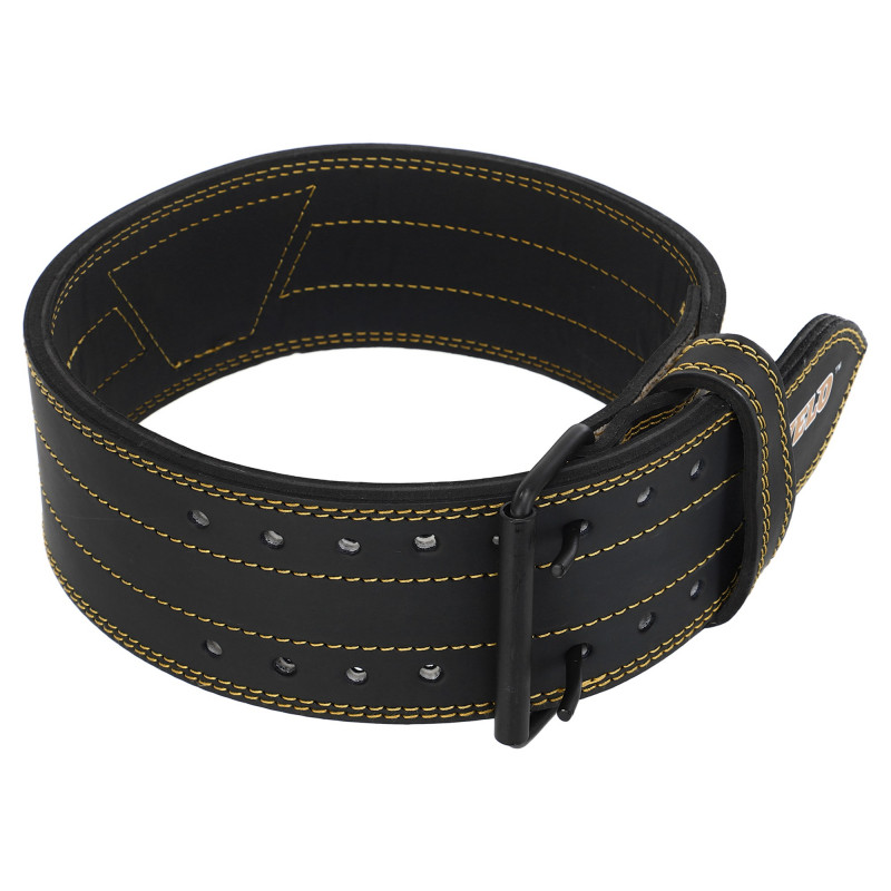 Цей пояс виготовлений із міцної товстої шкіри, тому його практично неможливо розірвати і він не втрачає форму в процесі експлуатації. Пояс має одну ширину (10 см) по всій довжині – це покращує динаміку вправи, не даючи атлету «гнутися» вперед або сторони під впливом значної ваги. Лише кінець (мова) ременя злегка звужений і закруглений, щоб його було зручніше утримувати під час застібання. Подвійна пряжка з роликом дозволяє швидко і легко надіти/зняти пояс і забезпечує йому надійну фіксацію не даючи зміщуватися. Вибирати пояс слід так, щоб його розмір відповідав обхвату талії користувача.