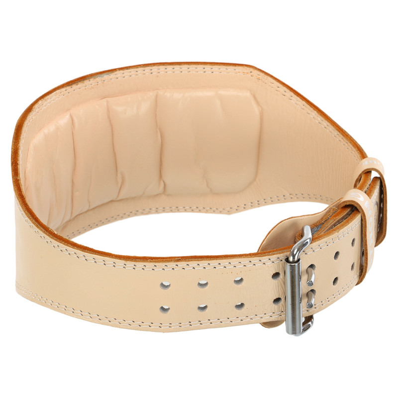 Цей потужний атлетичний пояс виготовлений з натуральної шкіри, стійкої до розривів і зносу. Кінці пояса звужені, тому відповідають анатомічним особливостям тіла – кромки ременя не тиснуть на живіт під час виконання вправ. Оптимальна ширина центральної частини пояса 15 см забезпечує надійну підтримку спині, але не обмежує рухів атлета. Міцна металева пряжка-застібка легко та швидко застібається/розстібається та забезпечує надійну фіксацію пояса.
