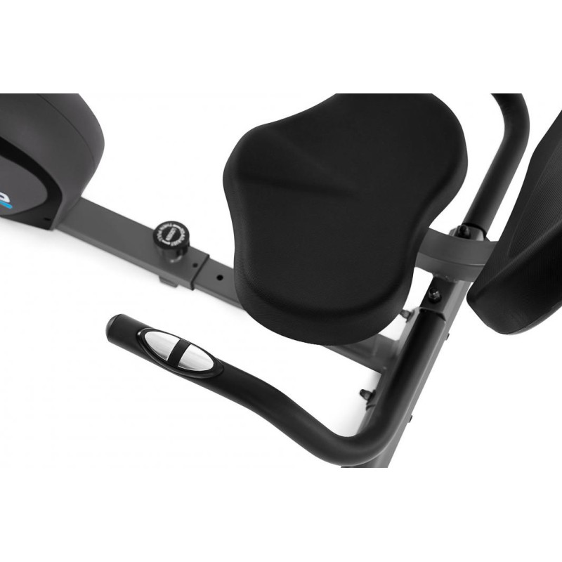 Оснащення широким сідлом із великою профільованою спинкою, він забезпечує винятковий комфорт їзди та ефективність тренувань, рівну досягнутій на вертикальних велосипедах. Ідеально підходить для квартири або домашнього спортзалу, ергономічний та надійний. Завдяки регульованій основі ви можете регулювати відстань сідла від педалей відповідно до свого зростання. Самовирівнювальні педалі з нековзкою поверхнею мають регульовані ремінці, які тримають ваші ноги під час катання. У велосипеді Vision використовується система магнітного опору, яка гарантує плавний рух і тиху роботу. Ви змінюєте навантаження за допомогою ергономічної ручки з 8-ступінчастою шкалою.