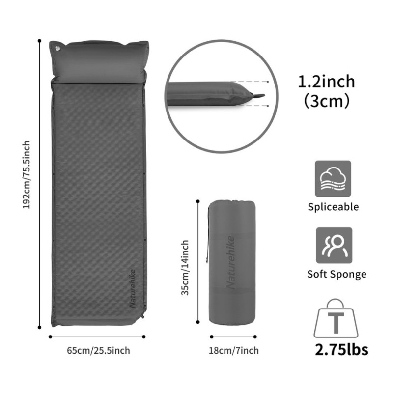 Опис килимка самонадувного одномісного з подушкою Naturehike CNK2300DZ014, 60 мм, графіт: