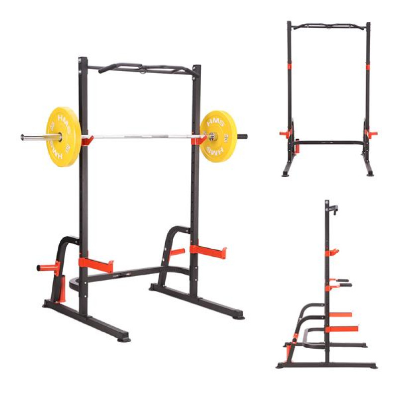 Стійка багатофункціональна PWS08 виробництва HMS з тримачем для штанги та страхувальними гаками. Вона дає змогу безпечно і самостійно виконувати силові вправи з додатковою вагою, а штангу і поручні можна використовувати для тренувань з гімнастики, тобто вправ з власною вагою тіла. Поручні також можна використовувати при виконанні вправ з обтяженням. Поручні, тримачі для штанги та страхувальні гаки регулюються по висоті.