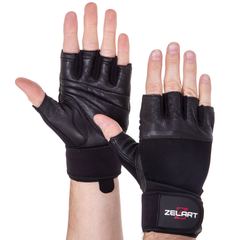 Рукавиці для фітнесу та важкої атлетики шкіряні Zelart SB-161069 S-XXL чорний