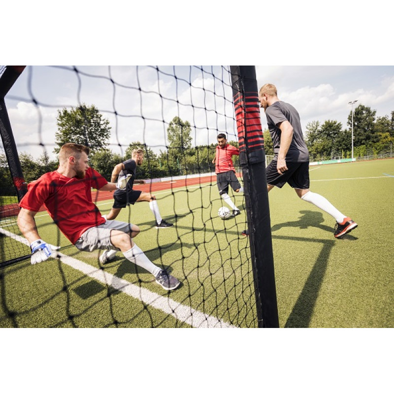 Сітка виготовлена з міцного та стійкого до погодних умов поліестеру. Ворота захищені від корозії методом порошкового фарбування. Кликова система дозволяє легко і швидко монтувати ворота.