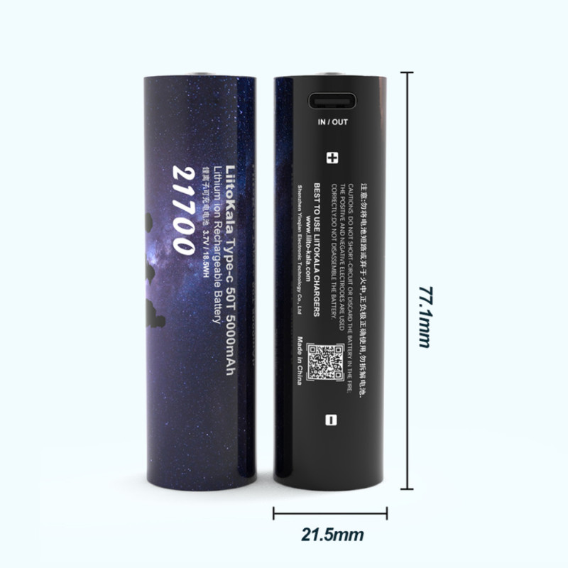 LiitoKala Type C-50T — це Li-ion акумулятор типорозміру 21700. Номінальна ємність сягає 5000 мАгод.
