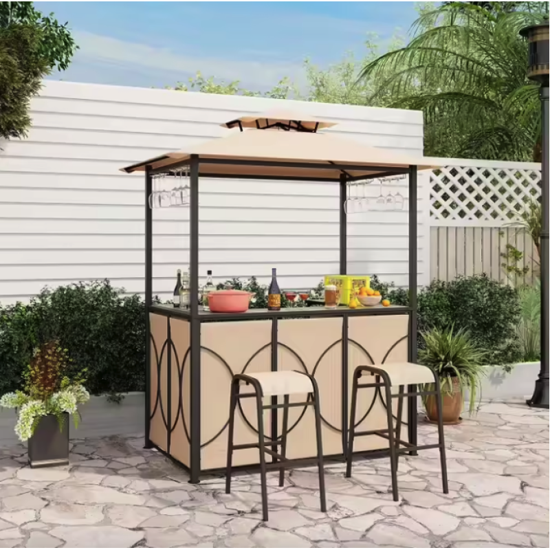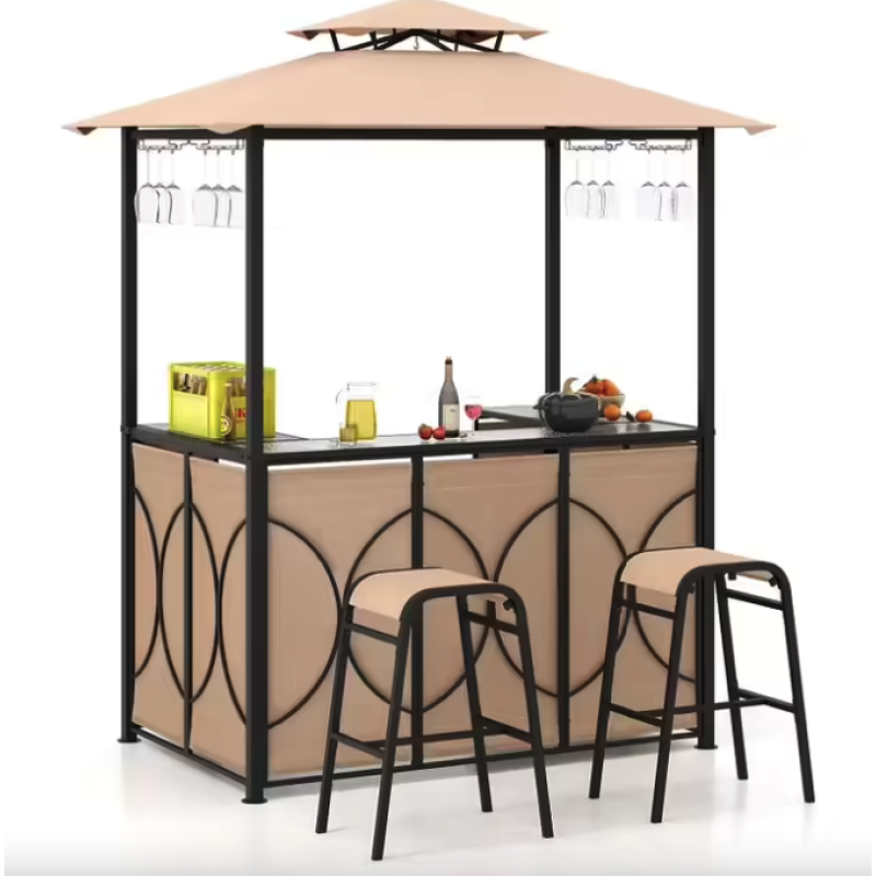 Альтанка Costway Naro з грилем і 2 барними стільцями бежевий