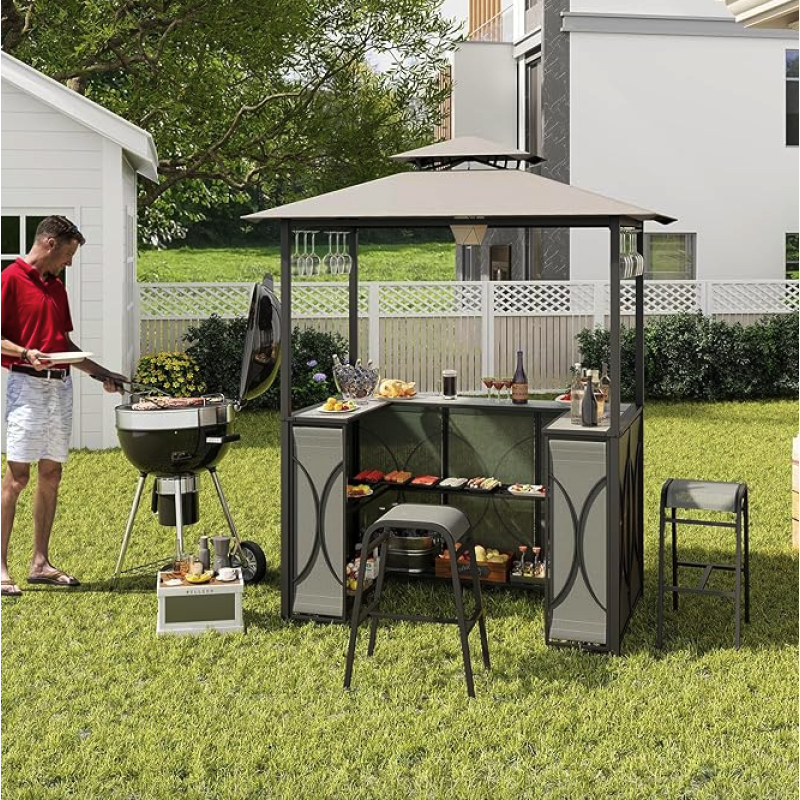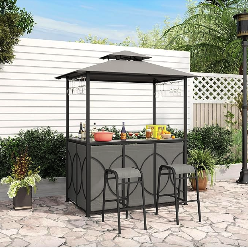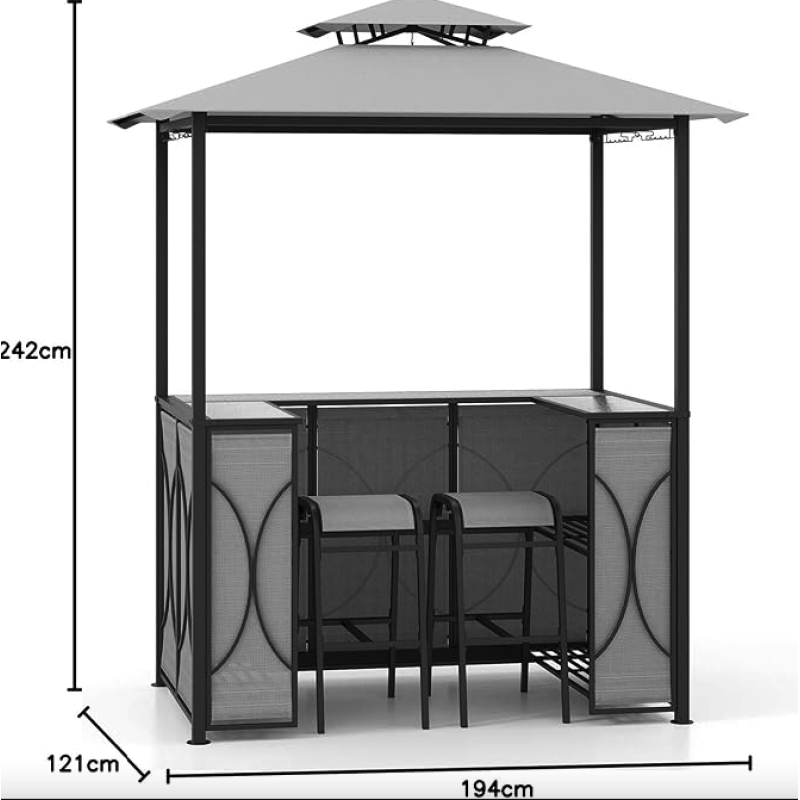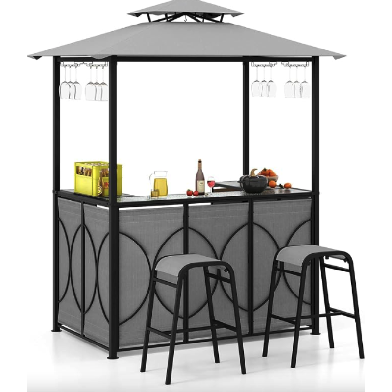 Альтанка Costway Naro з грилем і 2 барними стільцями сірий
