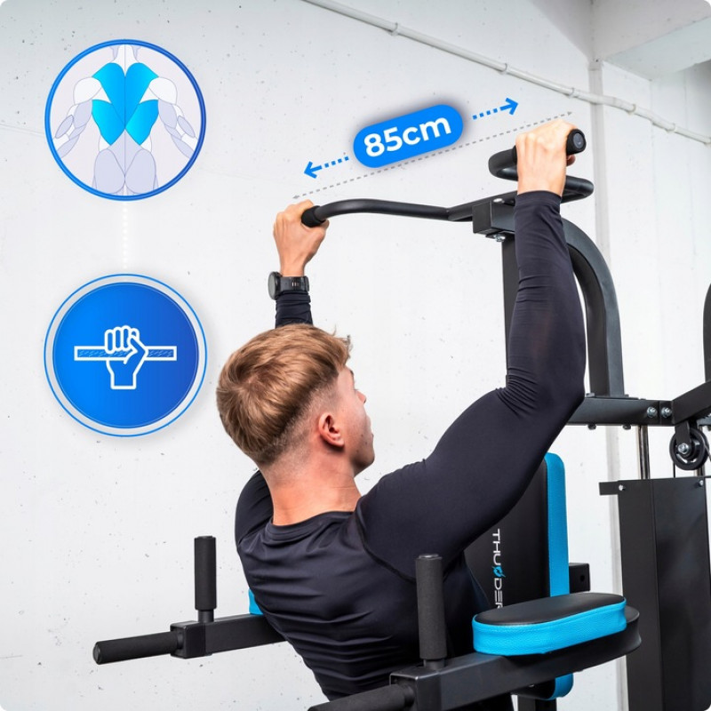 - Вбудована перекладина для підйому – ширина хвату: 85 см