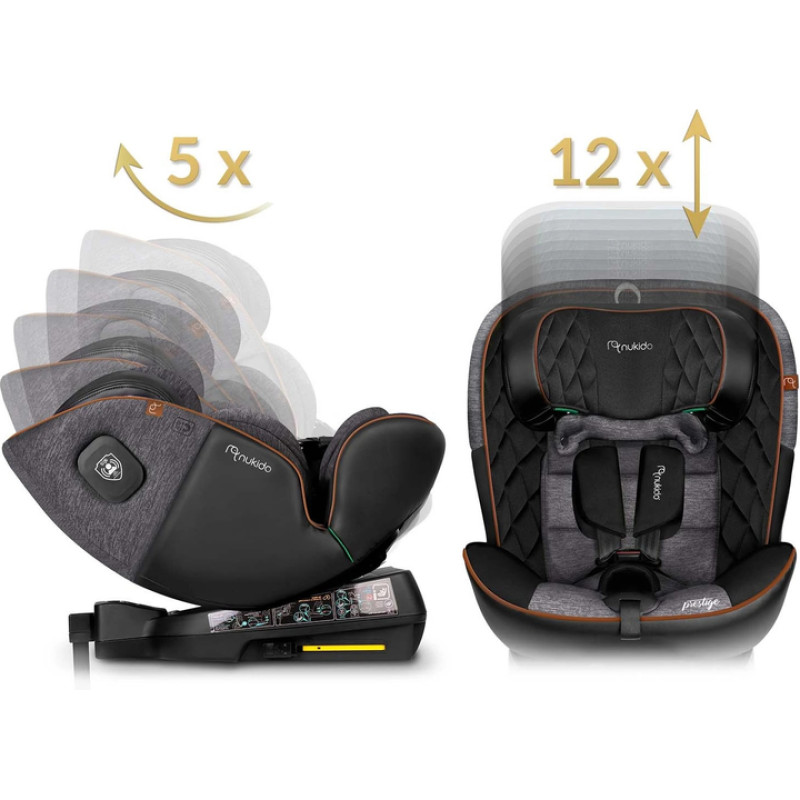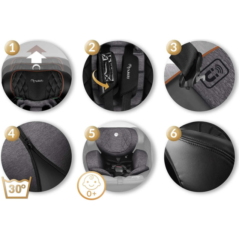 Nukido Автокрісло Prestige Line поєднує сучасні технології з високоякісним виконанням. Воно відповідає суворим європейським стандартам безпеки ECE R129, а його дизайн був ретельно розроблений для забезпечення максимального захисту під час подорожі.