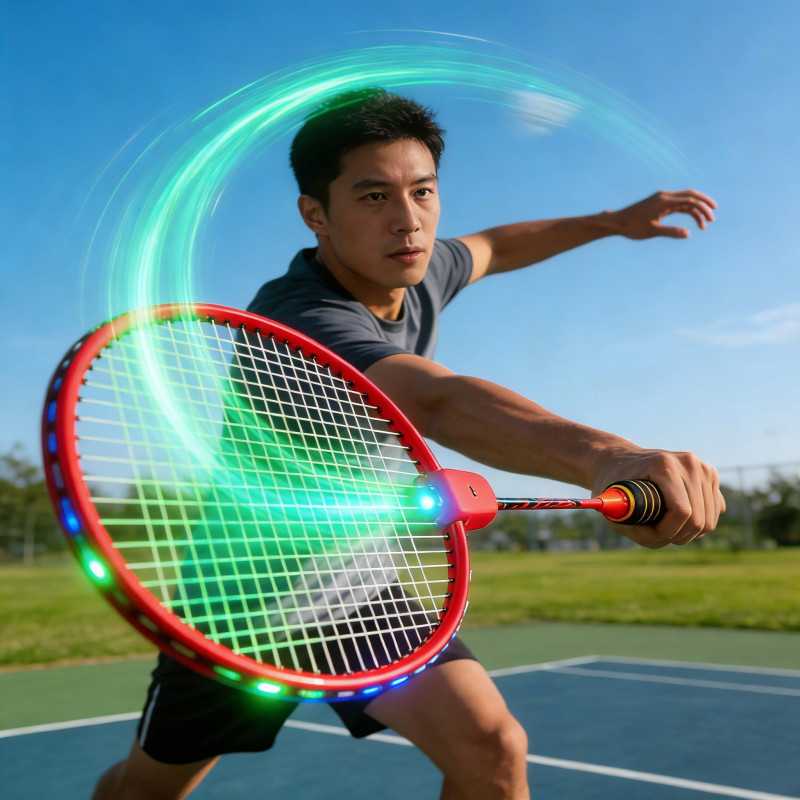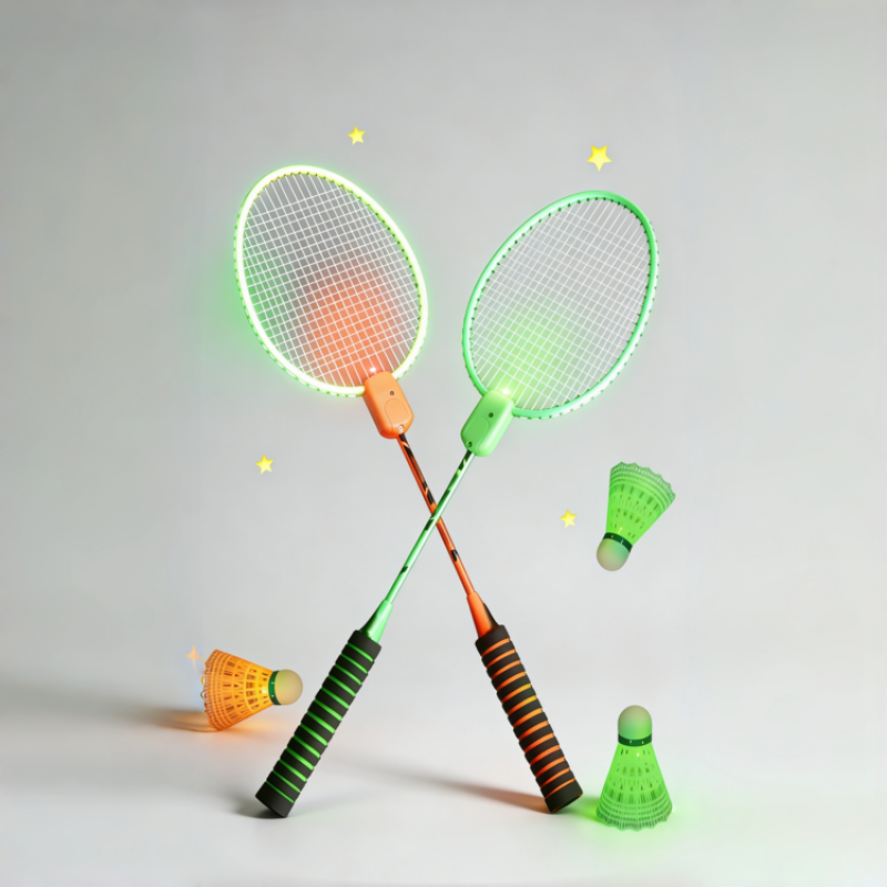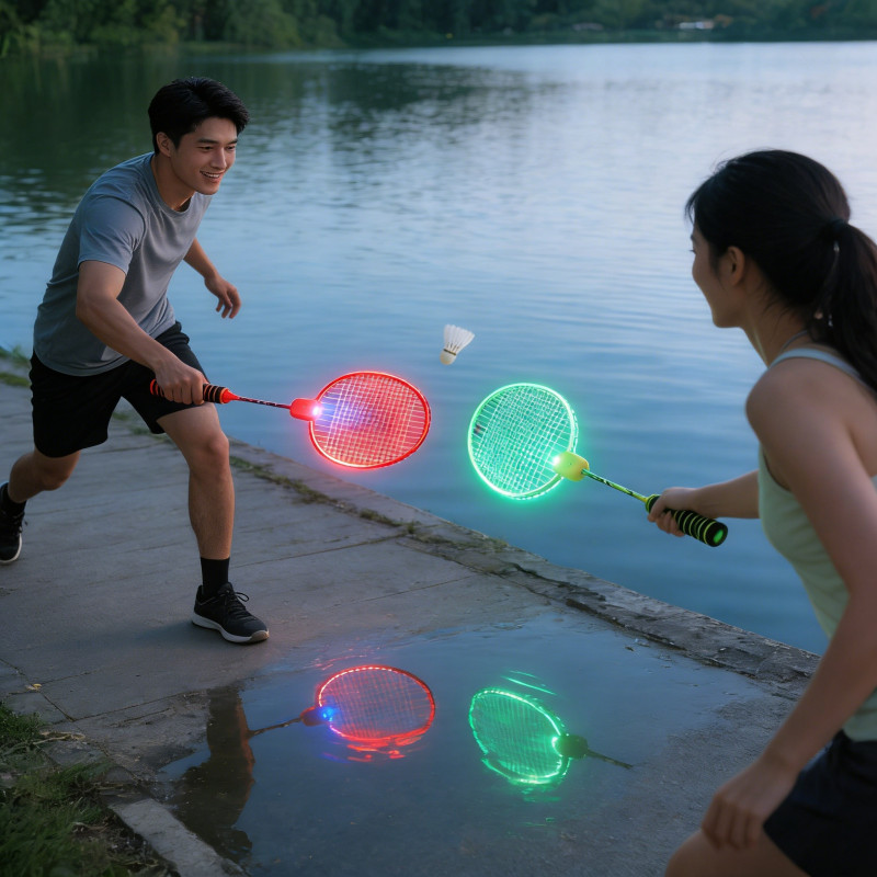 Ракетки оснащені вбудованою підсвіткою, яка створює ефектне сяйво під час гри, роблячи процес більш захопливим і видовищним, особливо ввечері. Ергономічні ручки з протиковзким покриттям забезпечують комфортний і надійний хват.