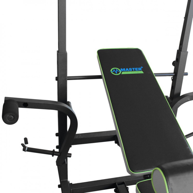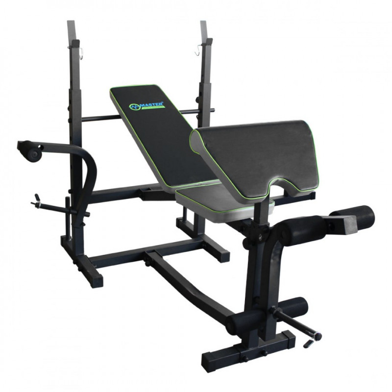 Багатофункціональна тренажерна лава MASTER із широким спектром застосування для тренувань виготовлена з міцних товстих сталевих профілів, що робить її дуже стабільною. Великий діапазон регулювань спинки дає можливість виконувати вправи для різних груп м'язів. Комфортне сидіння, спинка і поролонові ручки зроблять кожне тренування комфортним. Лава оснащена регульованими стійками, жимом для ніг, молитовником і руками для розтяжок (так звані батерфляї). Однією з найбільших переваг лави є підйом над головою.
