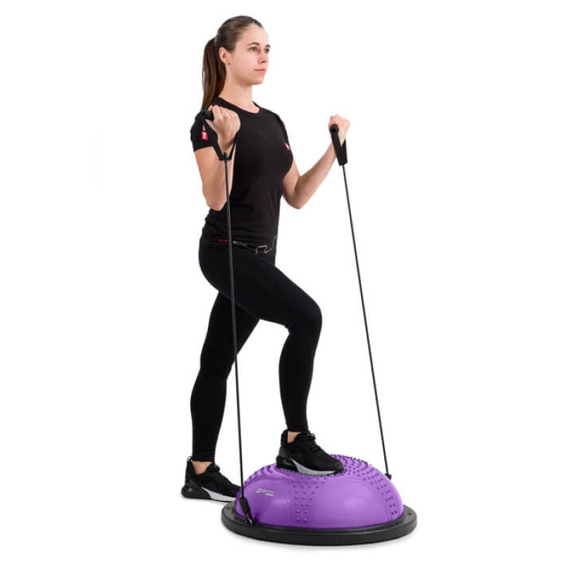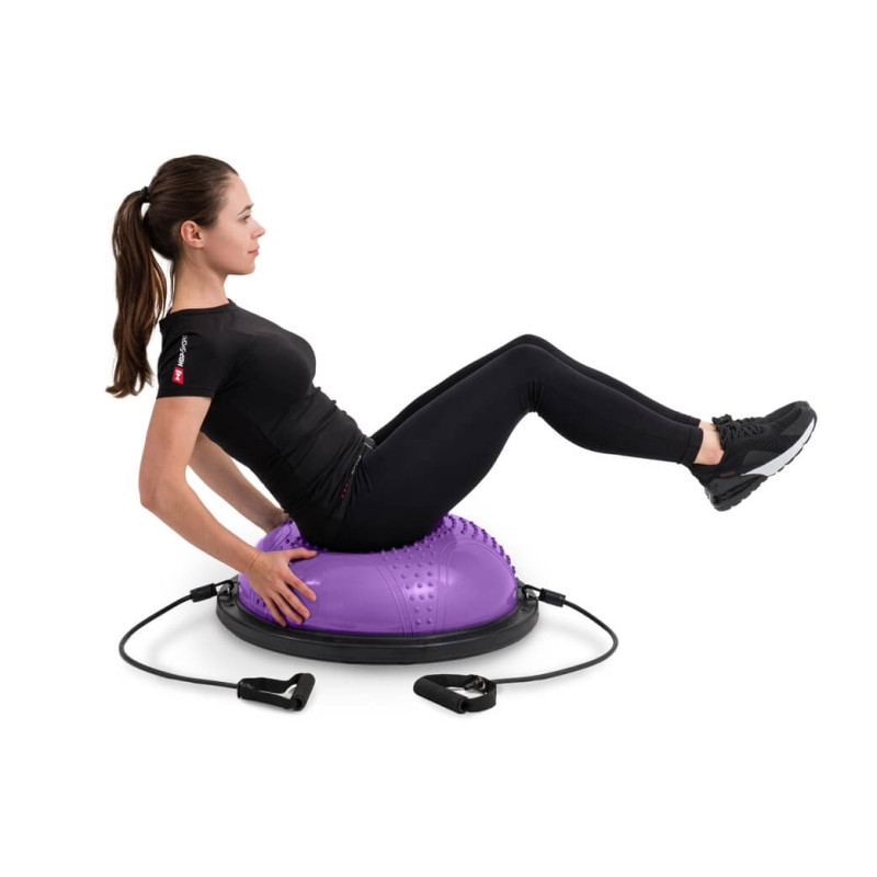 Через особливу конструкцію балансувальну півсферу також називають напівм'ячем, оскільки вона дуже схожа на розрізаний навпіл фітнес-м'яч, поставлений на стійку основу. Під час тренування ви можете розмістити пристрій напівкруглим куполом або плоскою основою вгору. Обидва положення дозволяють виконувати широкий спектр вправ у різних позиціях: на колінах, сидячи, лежачи, стоячи. На цьому обладнанні також можна бігати і стрибати, тому його все частіше використовують любителі аеробних тренувань.