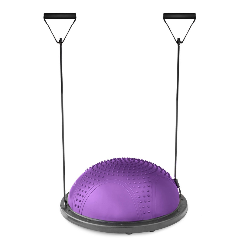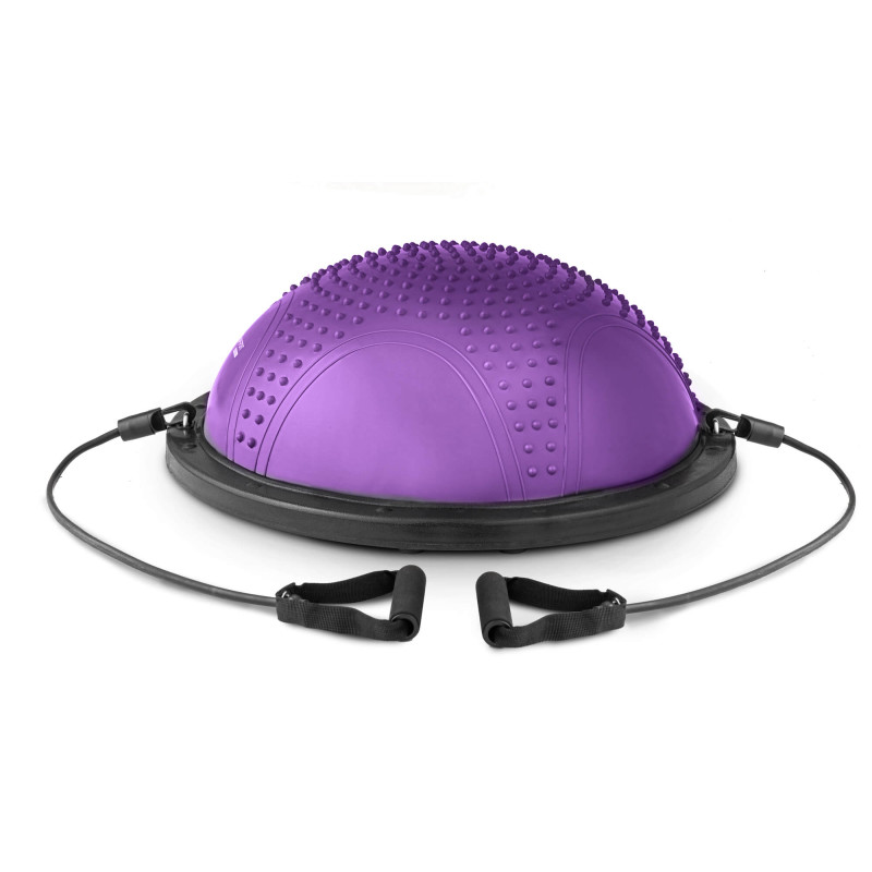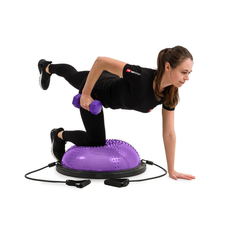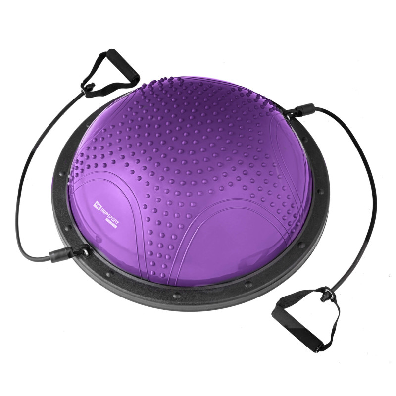 Балансувальна півсфера з вкрапленнями HS-MB058B - це інноваційний пристрій, який не тільки ефективно зміцнить ваше тіло, але й чудово виправить вашу поставу. Виконуючи вправи на нестійкій поверхні півсфери, ви задієте набагато більше м'язів, ніж під час звичайного тренування (включаючи глибинні м'язи). Такі заняття допоможуть покращити координацію рухів, а також чудово підійдуть для реабілітаційних вправ або варіацій фітнес-тренувань. Гумовий купол із масажними вкрапленнями чудово покращує кровообіг і знижує м'язову напругу. Також продукт оснащений двома еспандерами, завдяки яким ви можете виконувати різні варіації вправ. Зазначимо, що в комплект входить насос.