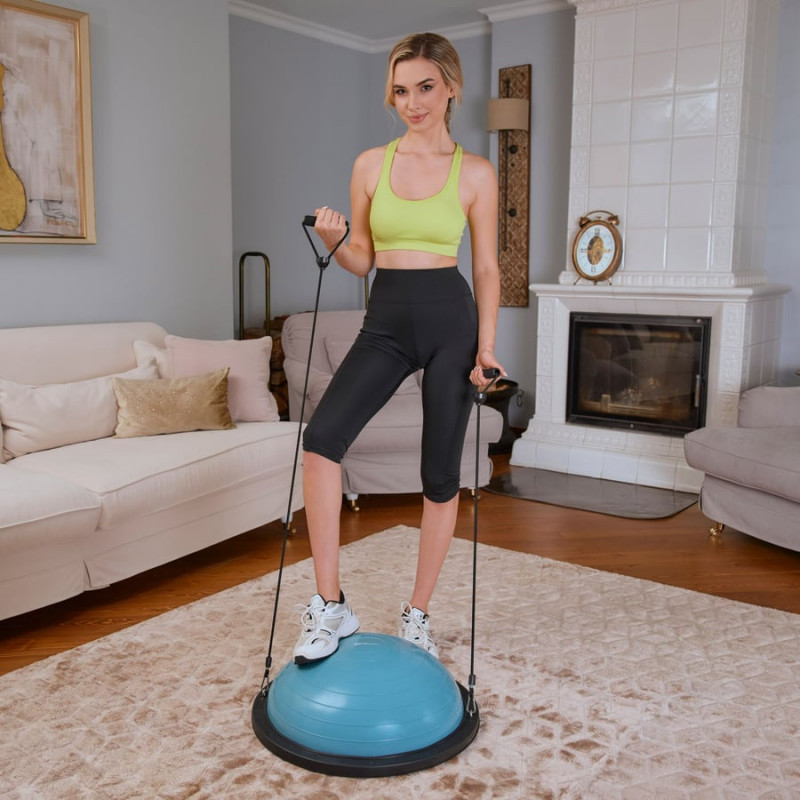 У комплект входять два гумові еспандери довжиною 80см, які дозволяють поєднати тренування балансу з силовими вправами для верхньої частини тіла, а також насос.