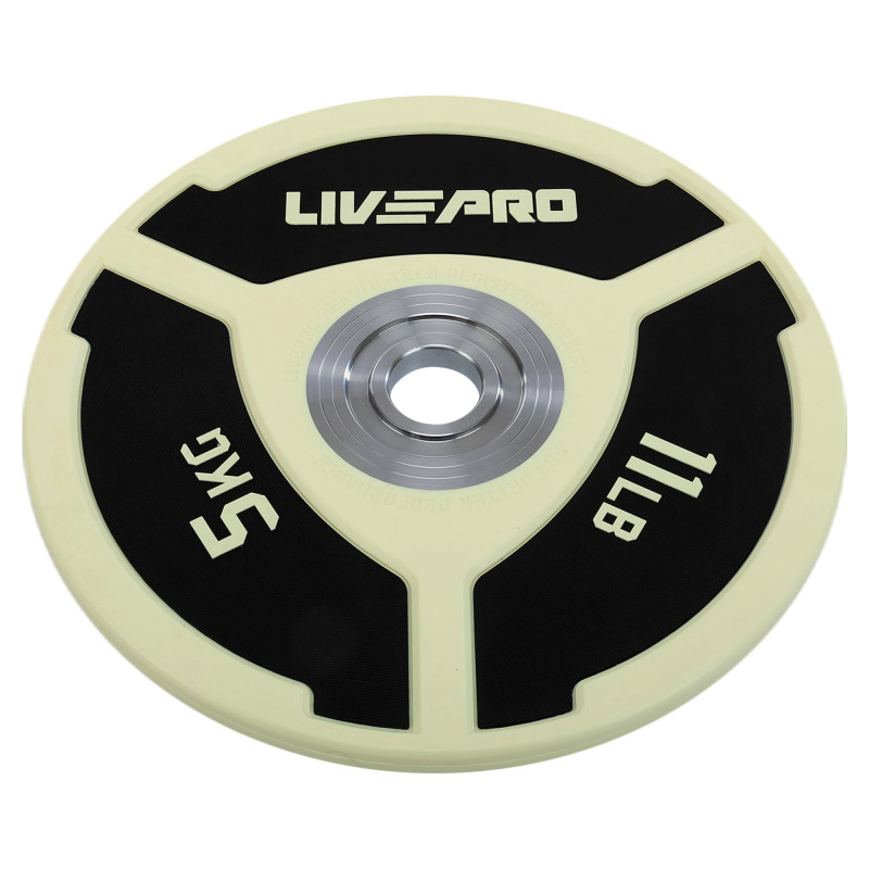 Диски для кросфіту від LiveUp виготовлені з урахуванням потреб атлетів для максимального комфорту на тренуваннях. Вагу диска легко можна відрізнити за кольором. Це істотно спрощує пошук необхідного обтяження в тренажерному залі. Також на диску присутнє цифрове позначення в кілограмах і фунтах.