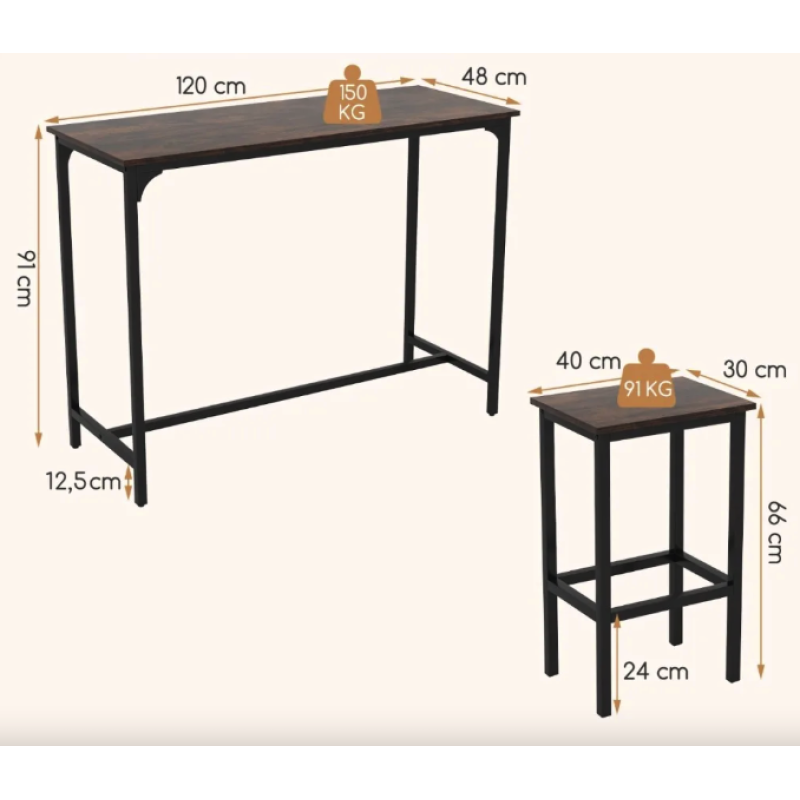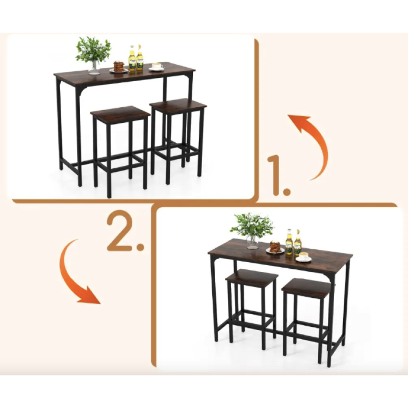 Барний стіл та 2 барні стільці Costway Hoobro в стилі Loft