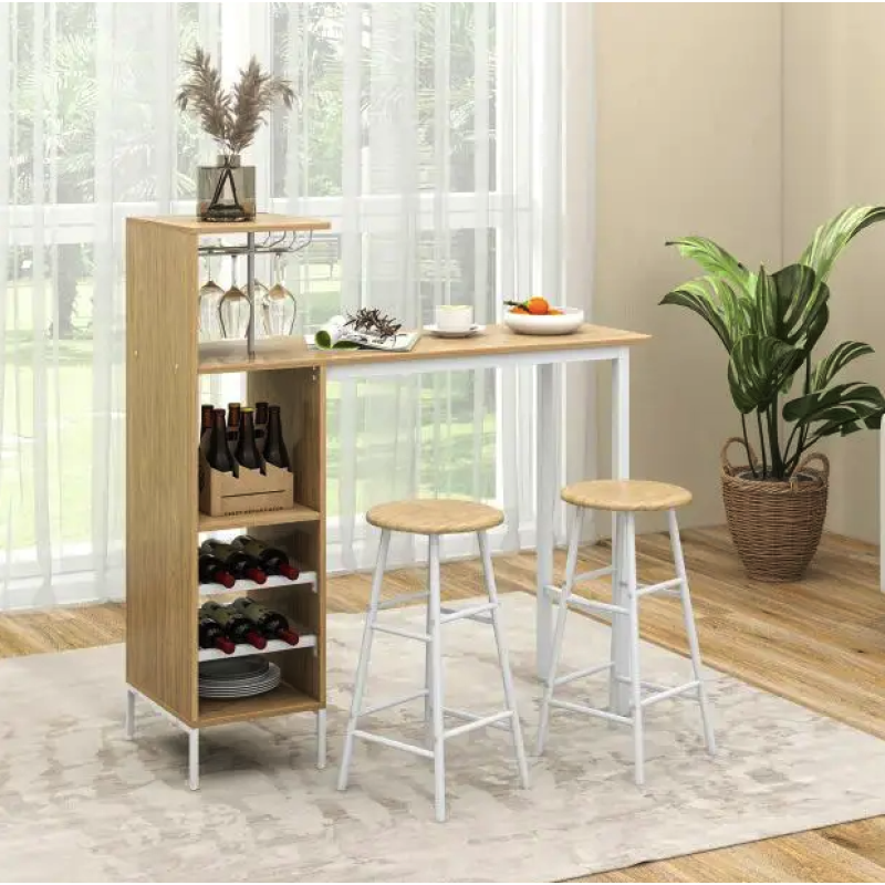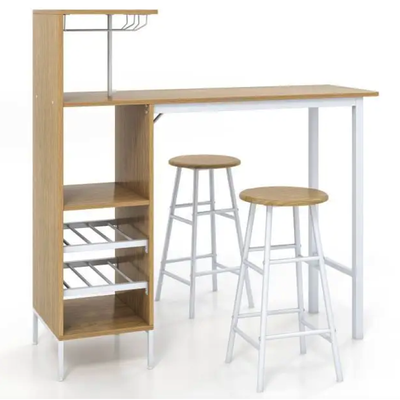 Барний стіл з стільцями Costway Bistro з тримачем винних келихів натуральний