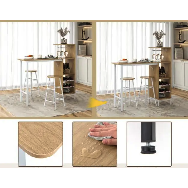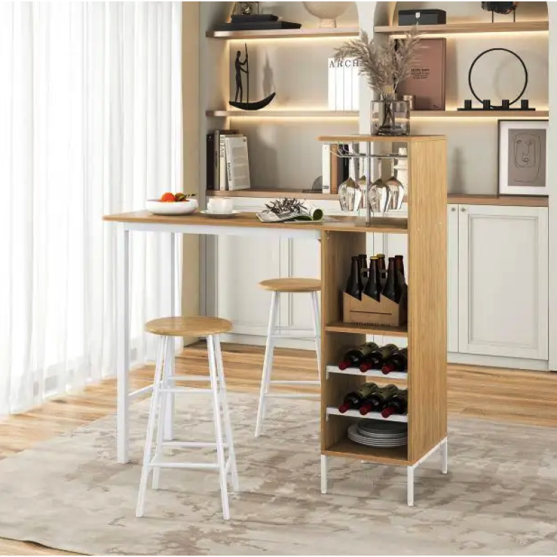 У кожному домі має бути місце для насолоди: ранкова кава, вечірній келих вина або дружня розмова. Ідеальним супутником у цьому стане набір барних меблів Costway Bistro - естетичне та функціональне рішення для створення затишного барного куточка у вас вдома. Цей комплект із барного столу та 2 високих стільців не тільки захоплює сучасним стилем Loft, але й дивує продуманістю: вбудована винна стійка, тримачі для келихів, полиці для дрібниць - усе це дозволяє вам зберігати улюблені напої, келихи, аксесуари в одному місці. Надійна конструкція, приємні на дотик матеріали та комфорт у кожній деталі - ідеальна формула для вечорів зі смаком.