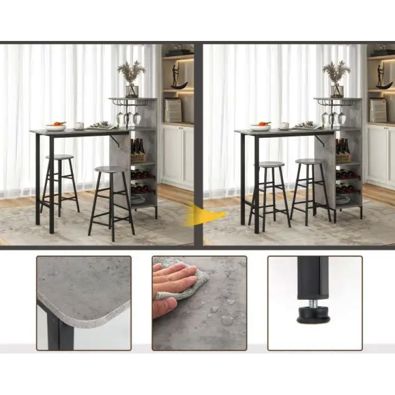 У кожному домі має бути місце для насолоди: ранкова кава, вечірній келих вина або дружня розмова. Ідеальним супутником у цьому стане набір барних меблів Costway Bistro - естетичне та функціональне рішення для створення затишного барного куточка у вас вдома. Цей комплект із барного столу та 2 високих стільців не тільки захоплює сучасним стилем Loft, але й дивує продуманістю: вбудована винна стійка, тримачі для келихів, полиці для дрібниць - усе це дозволяє вам зберігати улюблені напої, келихи, аксесуари в одному місці. Надійна конструкція, приємні на дотик матеріали та комфорт у кожній деталі - ідеальна формула для вечорів зі смаком.