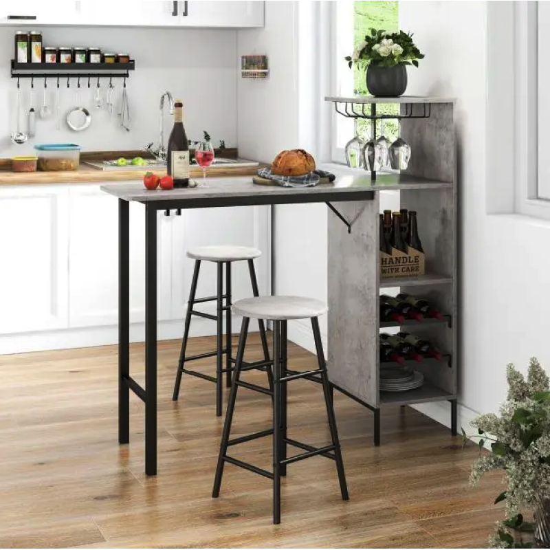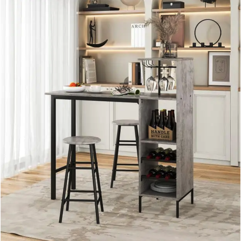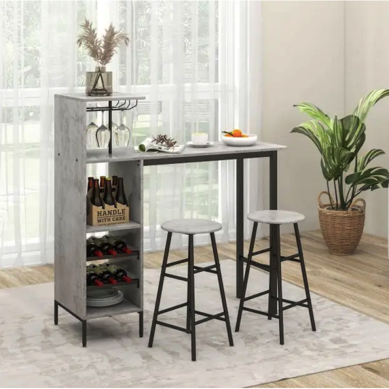 Барний стіл з стільцями Costway Bistro з тримачем винних келихів сірий