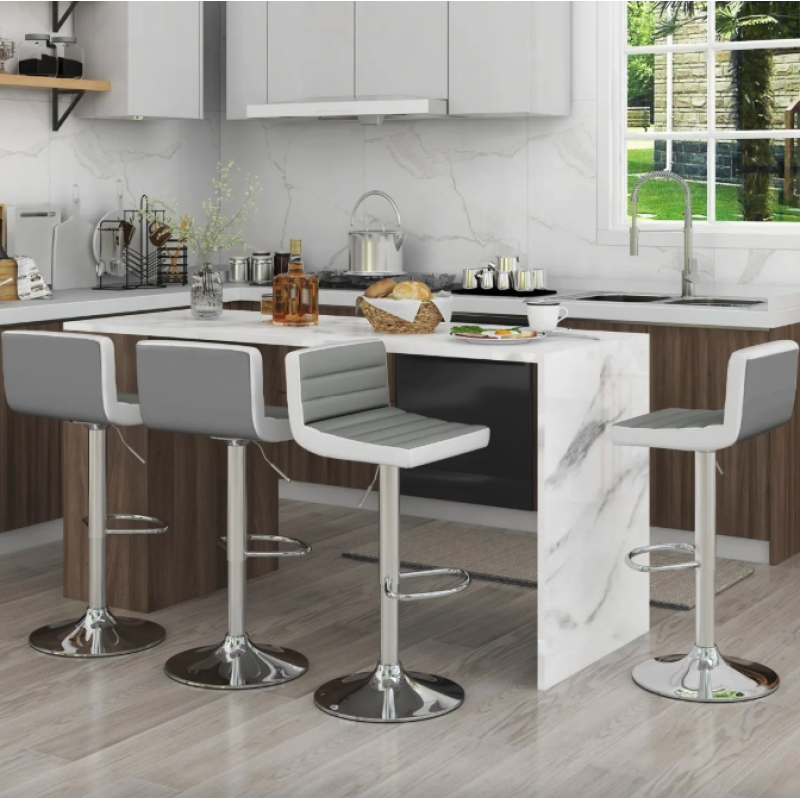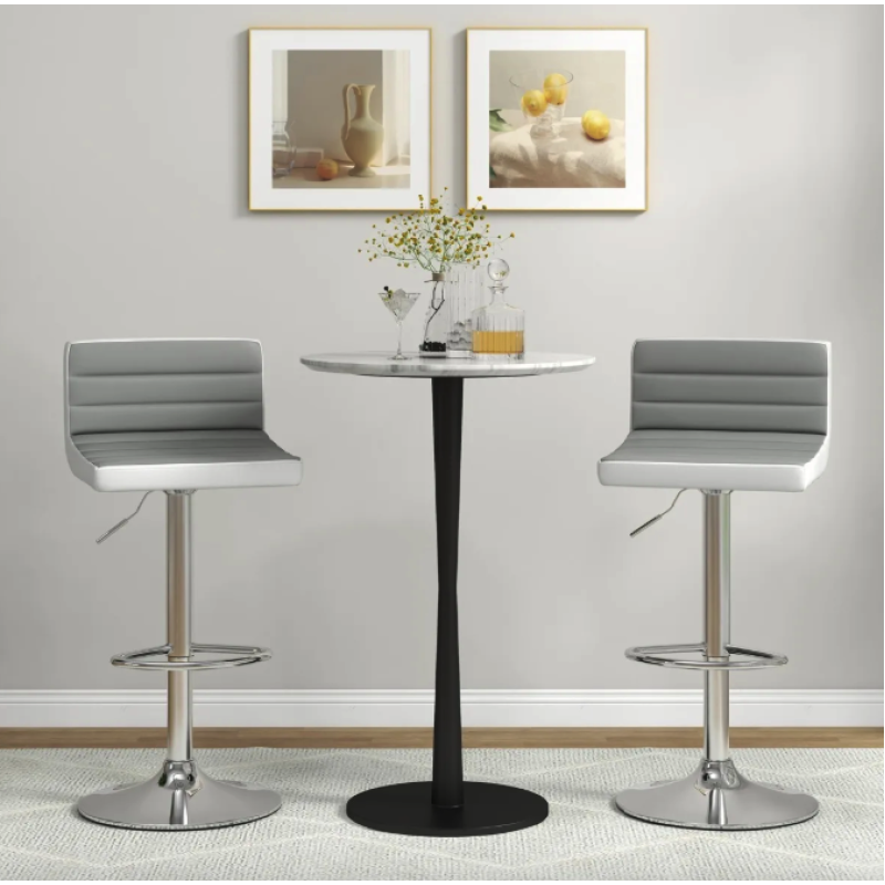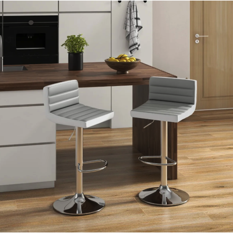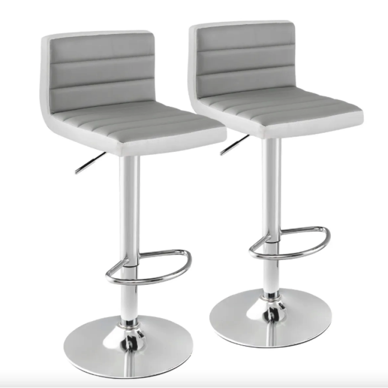 Барний стілець Costway Alisa 2 штуки екошкіра сірий #JV11211GR