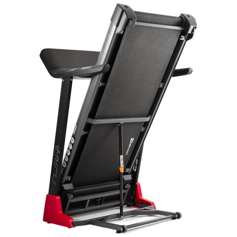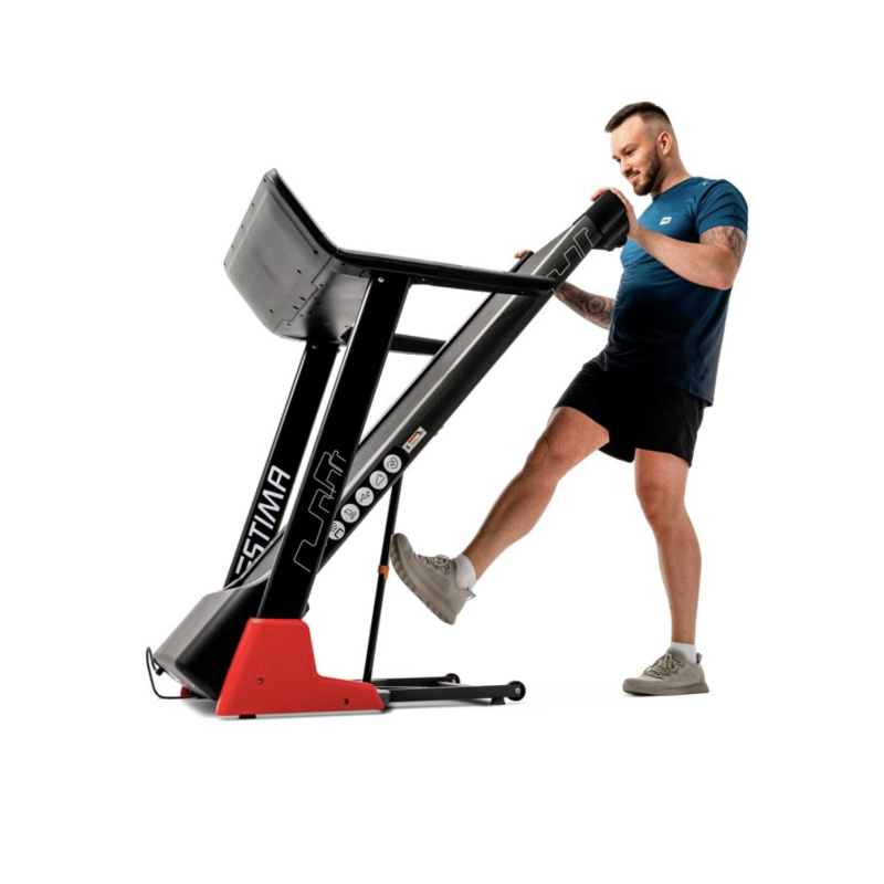 Модель Estima гарантує економію місця. Вона легко та просто складається вертикально. Транспортувальні ролики, розміщені на рамі, дозволяють переміщати її в будь-яке місце. За допомогою датчиків пульсу, розташованих на ручках, ви можете ретельно стежити за частотою свого пульсу під час тренування. А телеметричний пояс телеметрії, прикріплений до бігової доріжки, дозволяє вам контролювати пульс, не тримаючись руками за ручки.