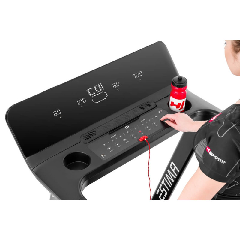 Сучасна бігова доріжка HS-3200LB Estima - це пристрій, який допоможе вам залишатись у формі, не виходячи з дому. Estima оснащена ефективним двигуном потужністю 3,5 к.с. і дозволяє проводити навіть дуже інтенсивні тренування зі швидкістю до 20 км / год! Розміри бігового полотна доріжки Estima складають 50/140см.