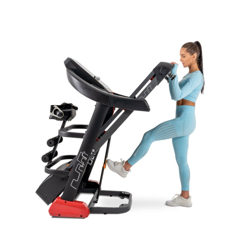 Ви можете скласти бігову доріжку в будь-який час і прибрати її з поля зору. Система гідравлічного м'якого падіння утримує вагу бігової доріжки, розкладаючи та складаючи її. Вам не потрібно буде нікого просити про допомогу! У складеному стані бігова доріжка Ultima займає 1,05 м2.