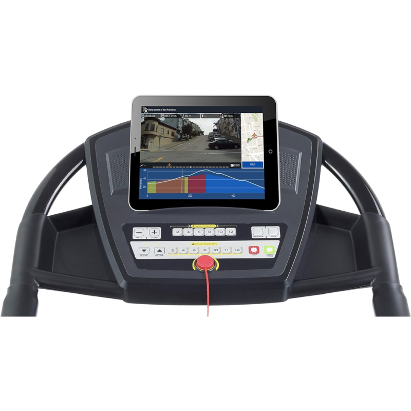 По центру консолі є 2 спеціальні отвори для напоїв чи для зберігання інших дрібниць. А також для зручності під час тренування, бігова доріжка оснащена тримачем для мобільного пристрою. Ваш гаджет завжди буде у безпеці під час тренування.