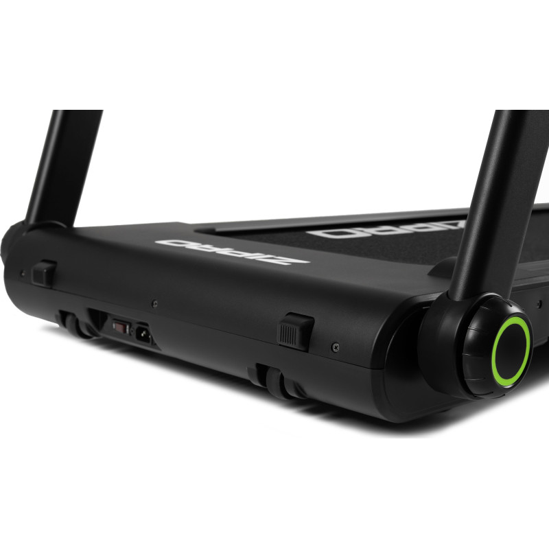 Регулювання швидкості можливе за допомогою кнопок на дисплеї та на бічних ручках, які додатково мають функцію вимірювання пульсу. Додатковим елементом є поличка для смартфона, яка дозволяє дивитися улюблені серіали під час бігової доріжки, що може «прискорити» час тренувань.