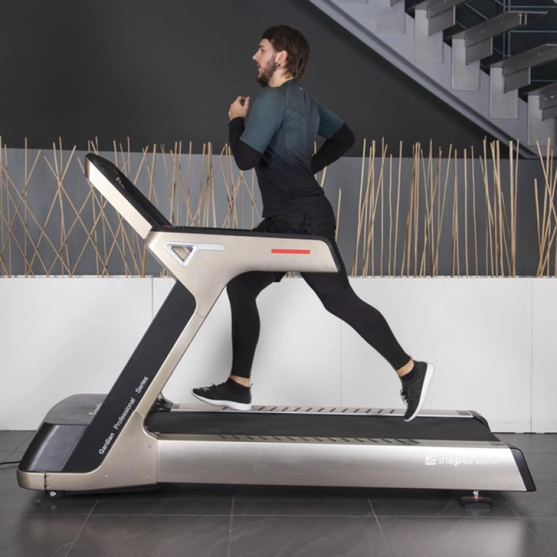 Електрична бігова доріжка inSportline Gardian G12 - це професійна бігова доріжка з сучасним елегантним дизайном, призначена для комерційного використання. Міцна конструкція, надійний двигун змінного струму потужністю до 8 к. с., вантажопідйомність до 200 кг і вага машини до 265 кг гарантують тривалий термін служби і безперебійну роботу обладнання. Нековзні платформи, поручні та гальмо безпеки забезпечують максимальну безпеку. Великі розміри бігового полотна (165х60) значно підвищують комфорт занять. Обладнання оснащене фіксуючими гвинтами, завдяки яким можна легко зменшити нерівності підлоги. Діапазон швидкості від 1 до 23 км/год з регулюванням кожні 0,1 км/год і кутом нахилу до 20% задовольнить навіть найвимогливіших користувачів.