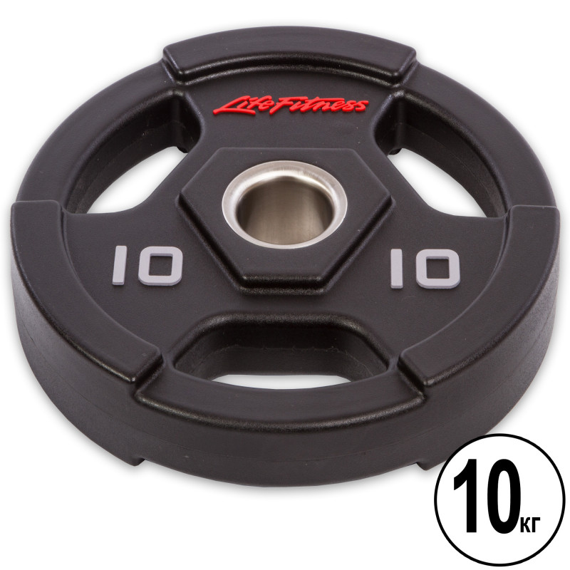 Млинці диски поліуретанові з потрійним хватом та металевою втулкою LIFE FITNESS SC-80154-10 51мм 10кг чорний