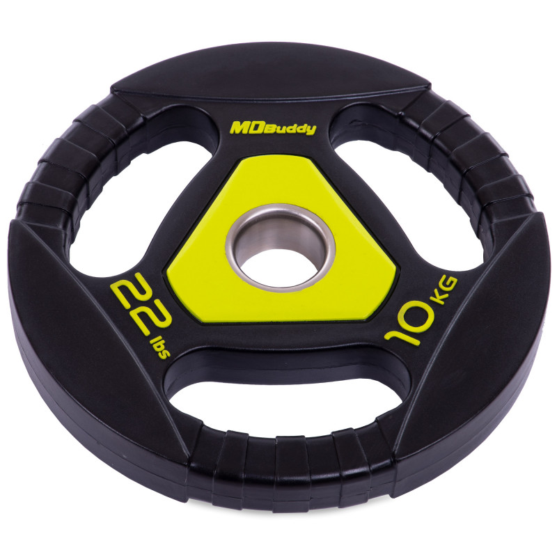 Млинці диски поліуретанові з потрійним хватом та металевою втулкою Zelart TA-2677-10 51мм 10кг чорний-салатовий