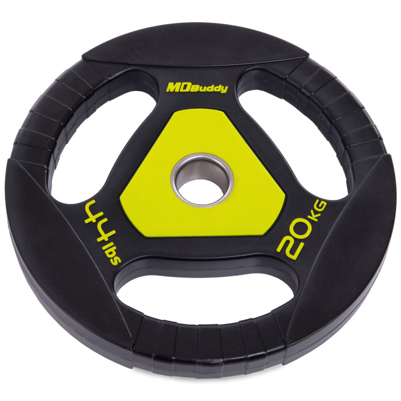 Млинці диски поліуретанові з потрійним хватом та металевою втулкою Zelart TA-2677-20 51мм 20кг чорний-салатовий