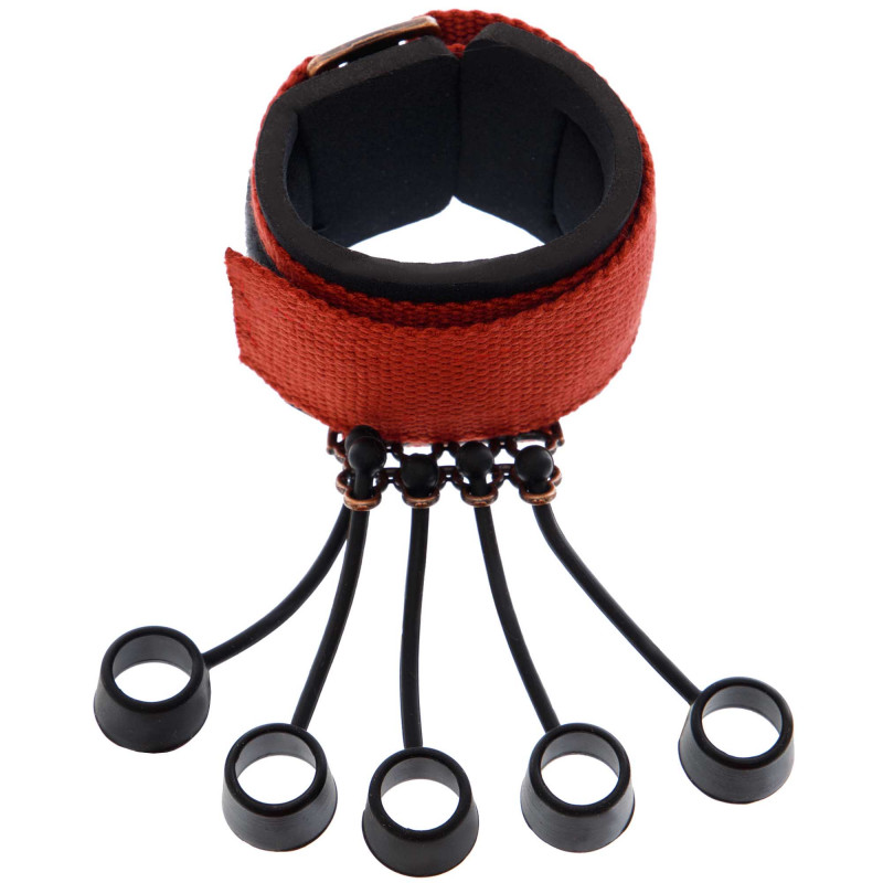 HARDNESS FI-9671-60LB виготовлений з якісних матеріалів, включаючи нейлон та силікон. Його пристрій передбачає отвір для кожного пальця, що забезпечує максимальну комфортність та ефективність тренувань. Конструкція з отворами для пальців фіксується на ремінці, який зручно вдягається на зап'ястя. Цей ремінець легко регулюється по обхвату зап'ястя, що робить його зручним для різних розмірів рук.