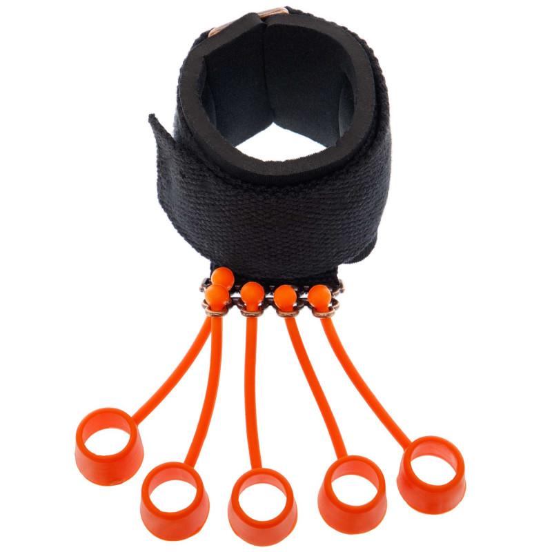 HARDNESS FI-9671-75LB виготовлений з якісних матеріалів, включаючи нейлон та силікон. Його пристрій передбачає отвір для кожного пальця, що забезпечує максимальну комфортність та ефективність тренувань. Конструкція з отворами для пальців фіксується на ремінці, який зручно вдягається на зап'ястя. Цей ремінець легко регулюється по обхвату зап'ястя, що робить його зручним для різних розмірів рук.