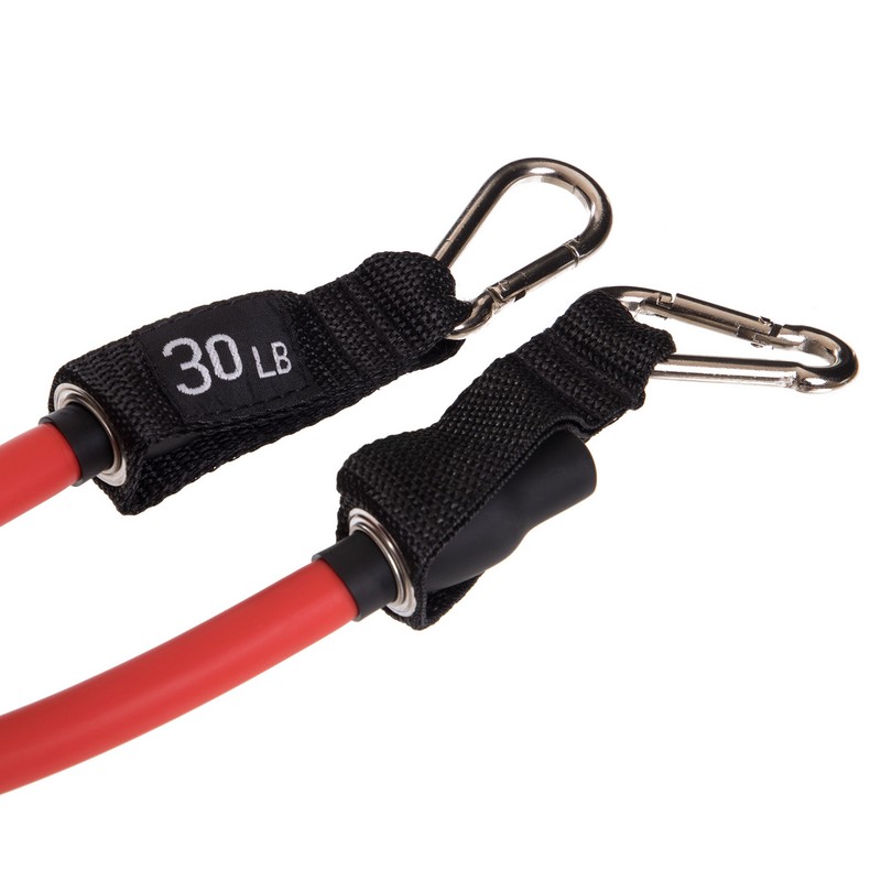Еспандер є міцною пружною трубкою, виготовленою з латексу. Основні характеристики цього матеріалу – стійкість до багаторазових деформацій, перепадів температури та впливу вологи, що дозволяє використовувати його як у приміщенні, так і на вулиці. По кінцях трубки за допомогою петель із поліестеру прикріплені металеві карабіни. Це дозволяє легко пристебнути/відстебнути джгут до ручок і тим самим швидко змінити рівень навантаження у рамках одного тренування. Щоб було легше зорієнтуватися, на петлях вказано номінальний опір джгута
