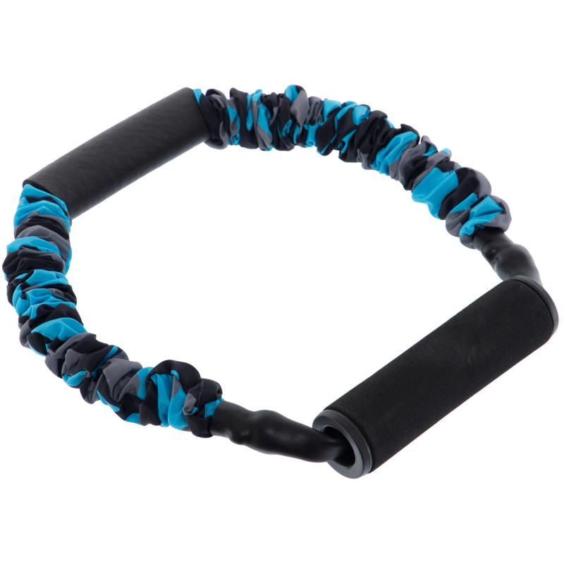 Особливу увагу приділено зручності використання: ручки із міцного пластику забезпечують надійний хват без ризику ковзання, навіть при інтенсивних заняттях. Центральний елемент еспандера – латексна трубка – саме вона відповідає за пружність та опір тренажера. Латекс відрізняється високою еластичністю, міцністю та стійкістю до багаторазових розтягувань, що гарантує тривалий термін служби та стабільне навантаження при кожному занятті. Завдяки трубчастій формі латекс рівномірно розподіляє зусилля по всій довжині, знижуючи ризик пошкоджень та створюючи комфортний опір м'язам. Для додаткового захисту латексна трубка поміщена в міцний нейлоновий рукав, який запобігає стиранню та продовжує експлуатацію еспандера.