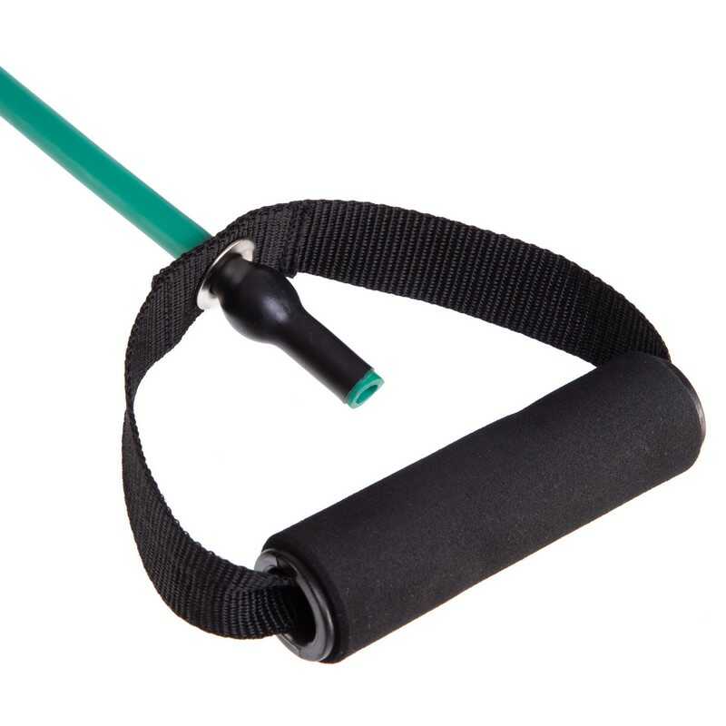 Тренажер є пружним еластичним джгутом, виготовленим з високоякісного латексу, який при розтягуванні створює навантаження для м'язів. Міцні зручні ручки з неопрену забезпечують повний контроль спортивного снаряда. Для його фіксації служить якір – смуга із міцного поліестеру.
