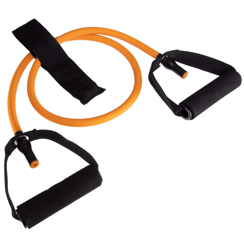 Тренажер є пружним еластичним джгутом, виготовленим з високоякісного латексу, який при розтягуванні створює навантаження для м'язів. Міцні зручні ручки з неопрену забезпечують повний контроль спортивного снаряда. Для його фіксації служить якір – смуга із міцного поліестеру.