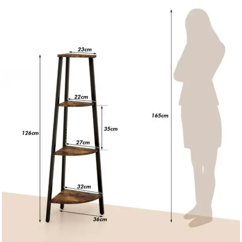 Є речі, які не просто функціональні, а надихають. Саме такою є кутова етажерка Costway Leo, що поєднує в собі індустріальну вишуканість Loft-дизайну та продуману до дрібниць ергономіку. Ця етажерка-драбина створена для тих, хто вміє розпоряджатися простором з розумом і хоче додати до інтер'єру нотку характеру, не жертвуючи при цьому практичністю. Чотири відкриті яруси - це не лише місце для зберігання, а ще й спосіб висловити свій стиль: розмістити книги, горщики з рослинами, свічки, фото в рамках чи улюблений декор. Вона ідеально вписується в будь-який вільний кут, перетворюючи його на справжню фокусну точку кімнати.