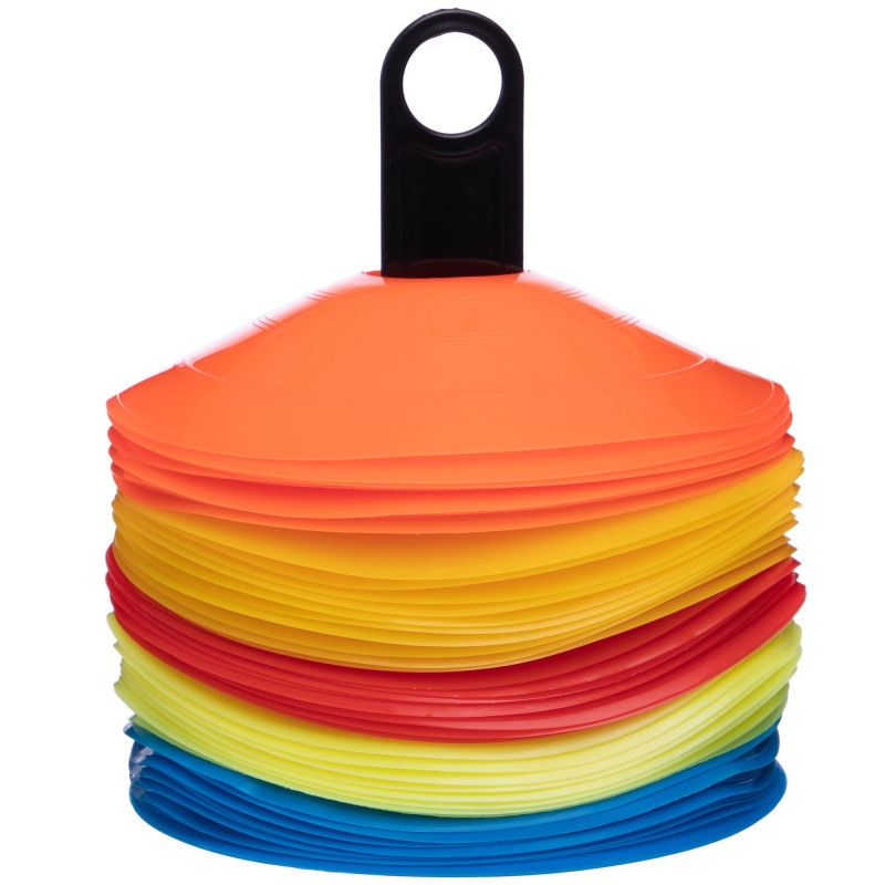 - Фішки допомагають швидко та наочно розмітити межі ігрового поля чи спортзалу.