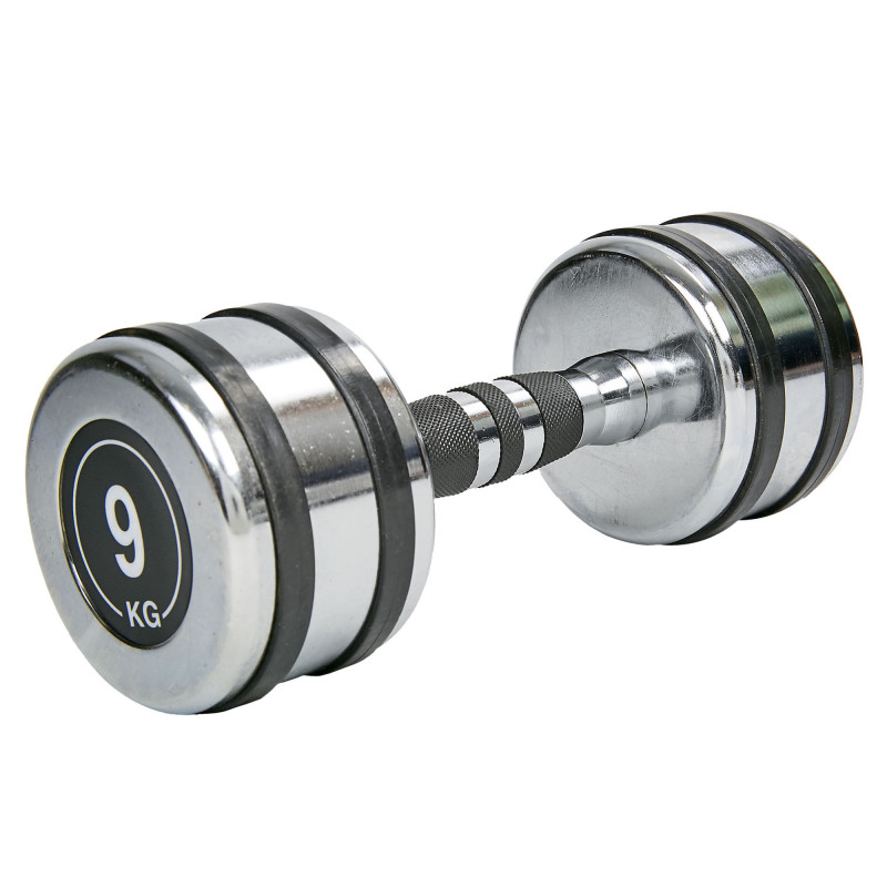 Гантель з фіксованою вагою можна використовувати для вправ на м'язи ніг, спини, грудей, рук і плечей. Вага гантелі становить 9 кг - це середній показник, який підійде жінкам із хорошою фізичною підготовкою та чоловікам із початковим або середнім рівнем. Досвідчені спортсмени можуть використовувати гантель такої ваги для розминки.