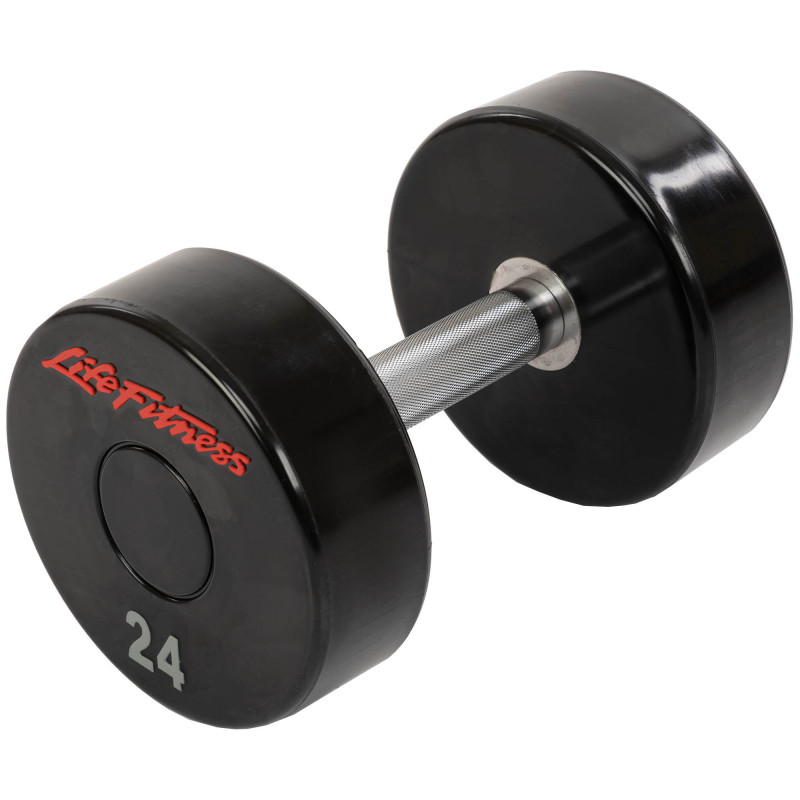 Гантель цільна професійна з поліуретановим покриттям LIFE FITNESS SC-80081-24 1шт 24кг чорний-червоний