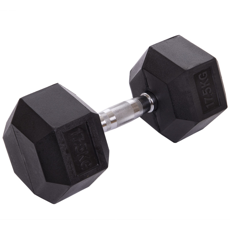 Гантель цільна шестигранна гексагональна обгумована SP-Planeta SC-8013-17_5 1шт 17,5кг чорний