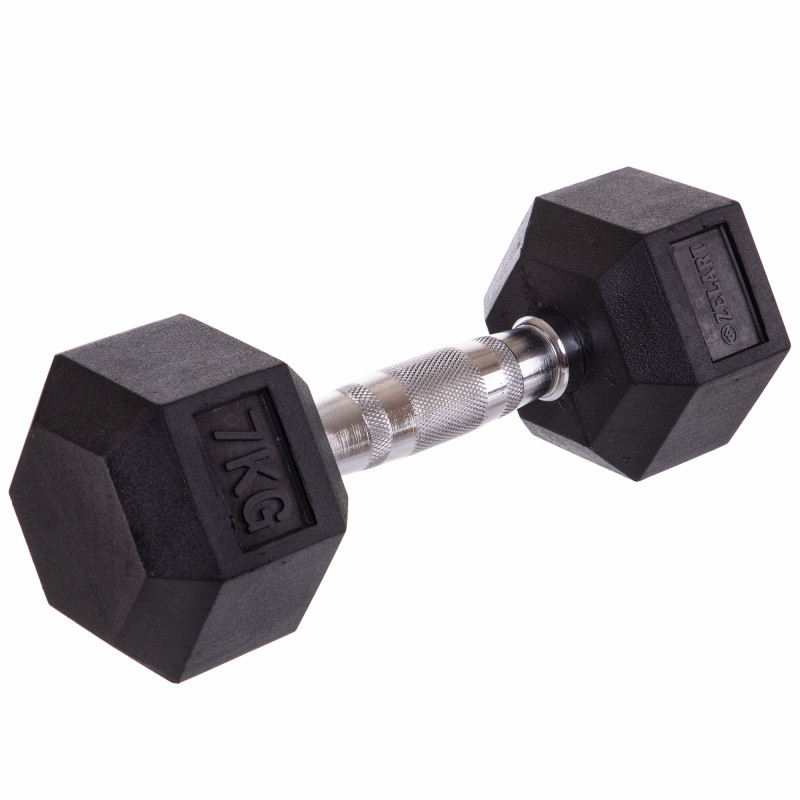 Гантель цільна шестигранна гексагональна обгумована Zelart TA-5159-7 1шт 7кг чорний