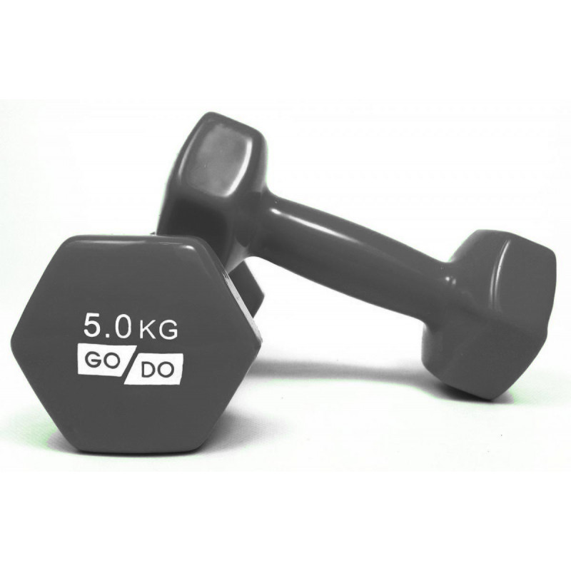 Гантелі для фітнесу з вініловим покриттям 2шт по 5кг GoDo GD-5.0GREY