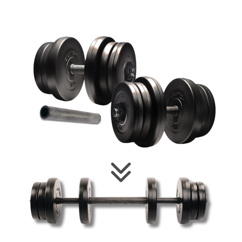 Шукаєте універсальне тренувальне обладнання, яке задовольнить усі ваші потреби? Elitum 2х21кг - це ідеальний вибір! Завдяки подовжувачу грифа цей набір гантелей пропонує ще більше можливостей: ви можете використовувати їх як окремі гантелі для ізольованих вправ або трансформувати у штангу для роботи з великими навантаженнями.