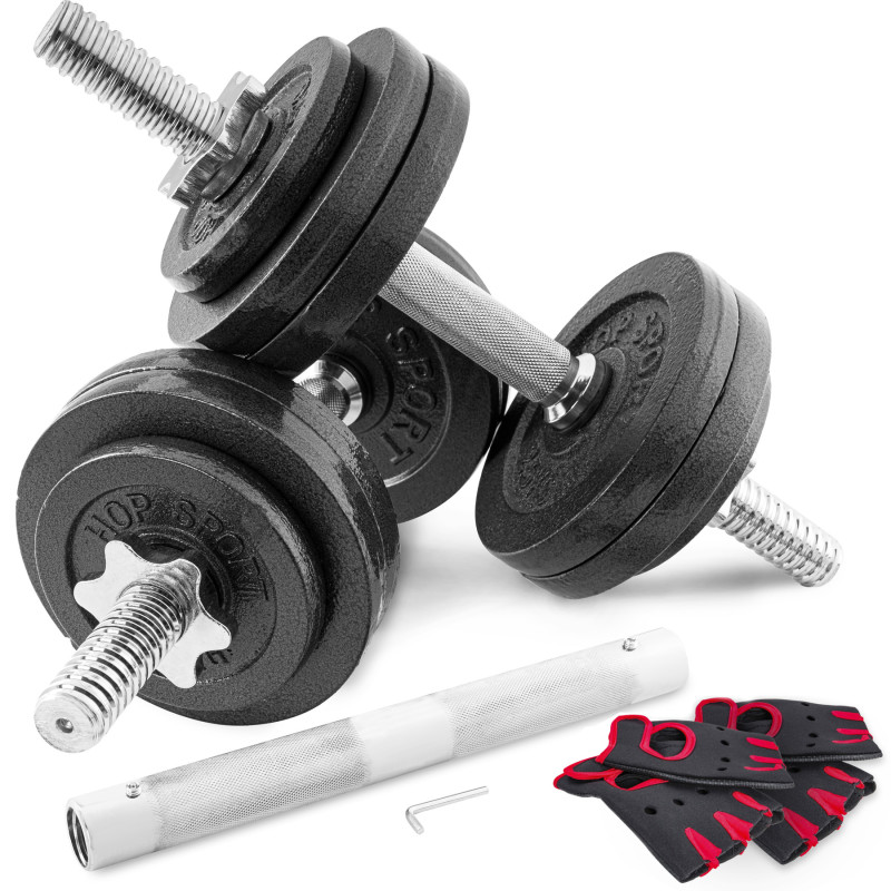 - це міцне обладнання, яке ідеально підійде для вашого домашнього спортзалу, надаючи вам ефективні, різноманітні та безпечні тренування. Завдяки прикріпленому спеціальному сталевому з'єднувачу ви можете швидко і легко перетворити гантель в штангу. Зміцнюйте м'язи, тренуючись з набором гантелей Hop-Sport!